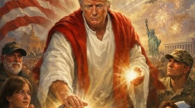 - Fato: Trump se representa como Jesus Cristo em uma montagem.