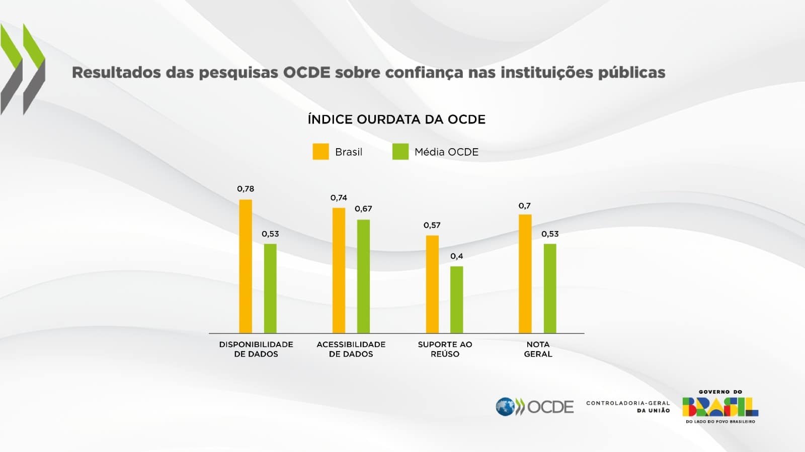 - Suporte ao reuso: nota de 0,57, superior à média da OCDE, que é de 0,40.