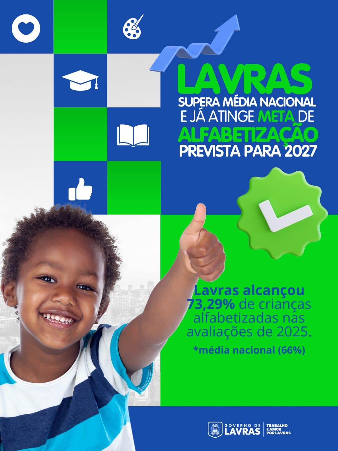 - Fato principal: Lavras alcançou a meta de alfabetização para 2027 em 2025.