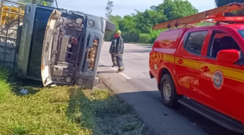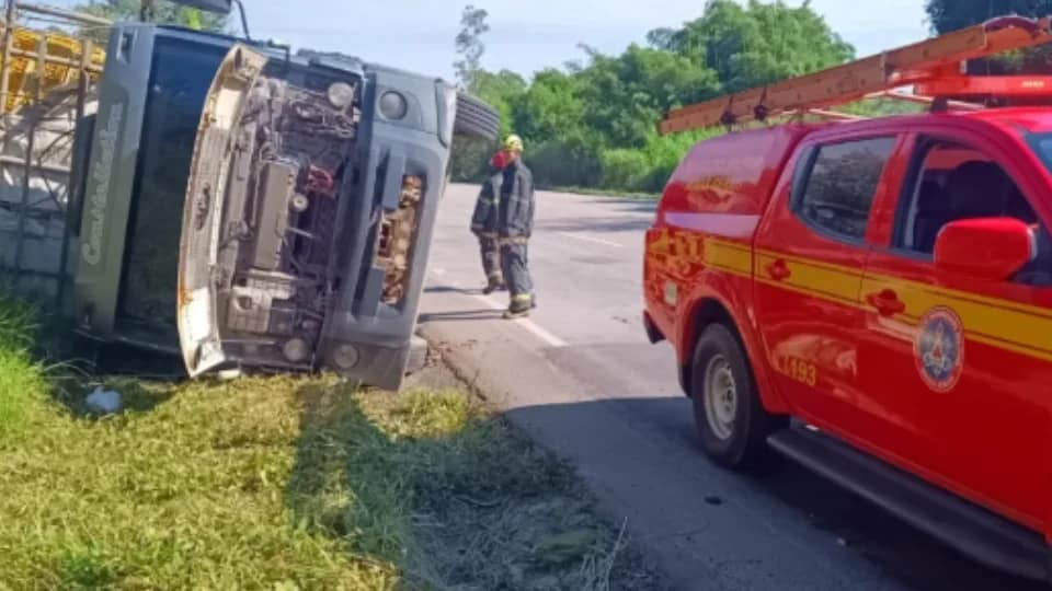 Carreta tomba BR-494 e mobiliza bombeiros em MG