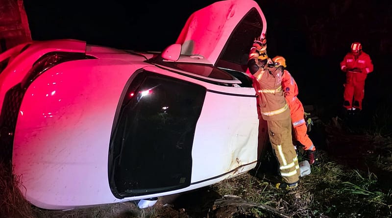 A causa do capotamento foi a perda de controle do motorista na rodovia.